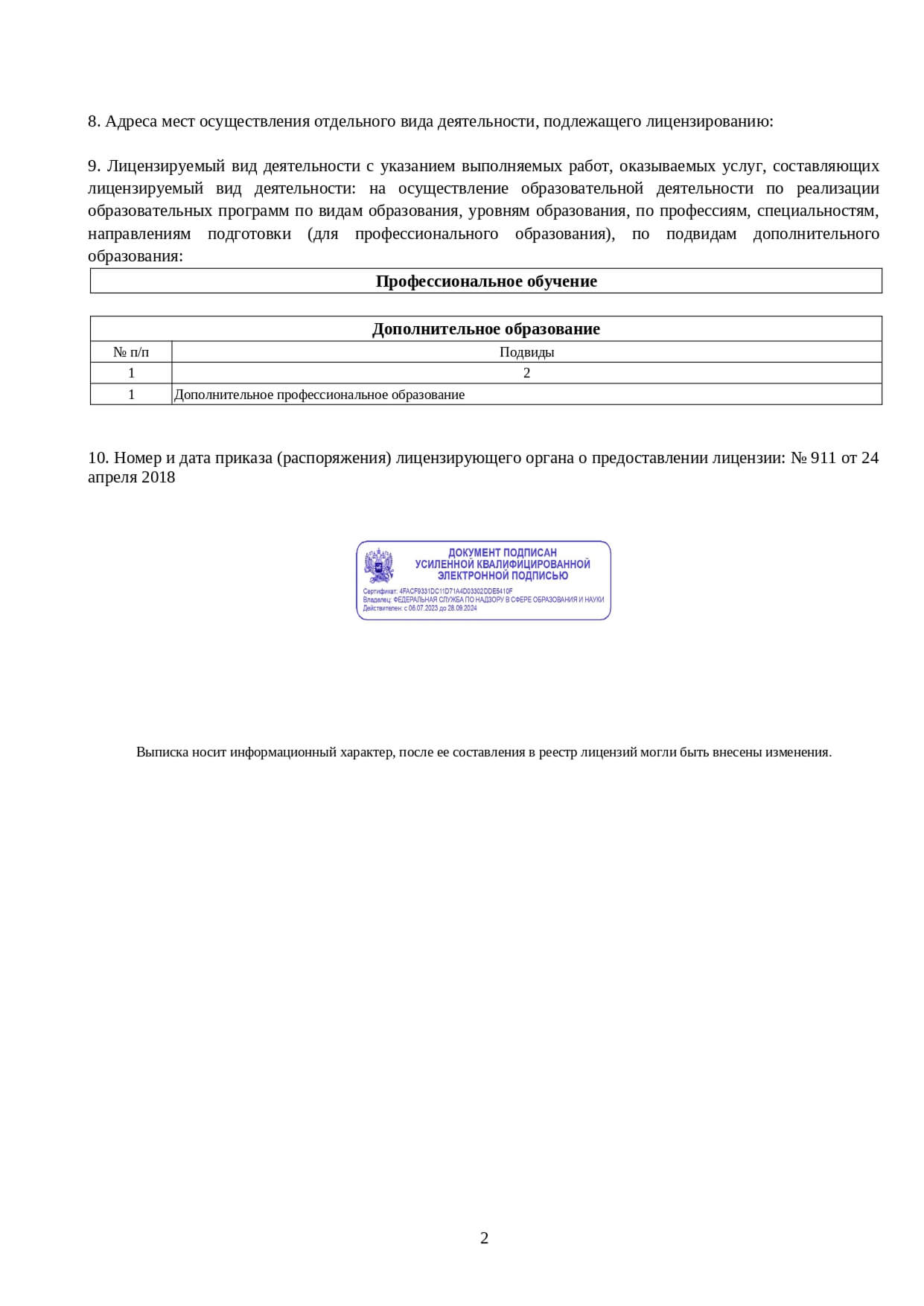 - Дополнительная информация об обучении