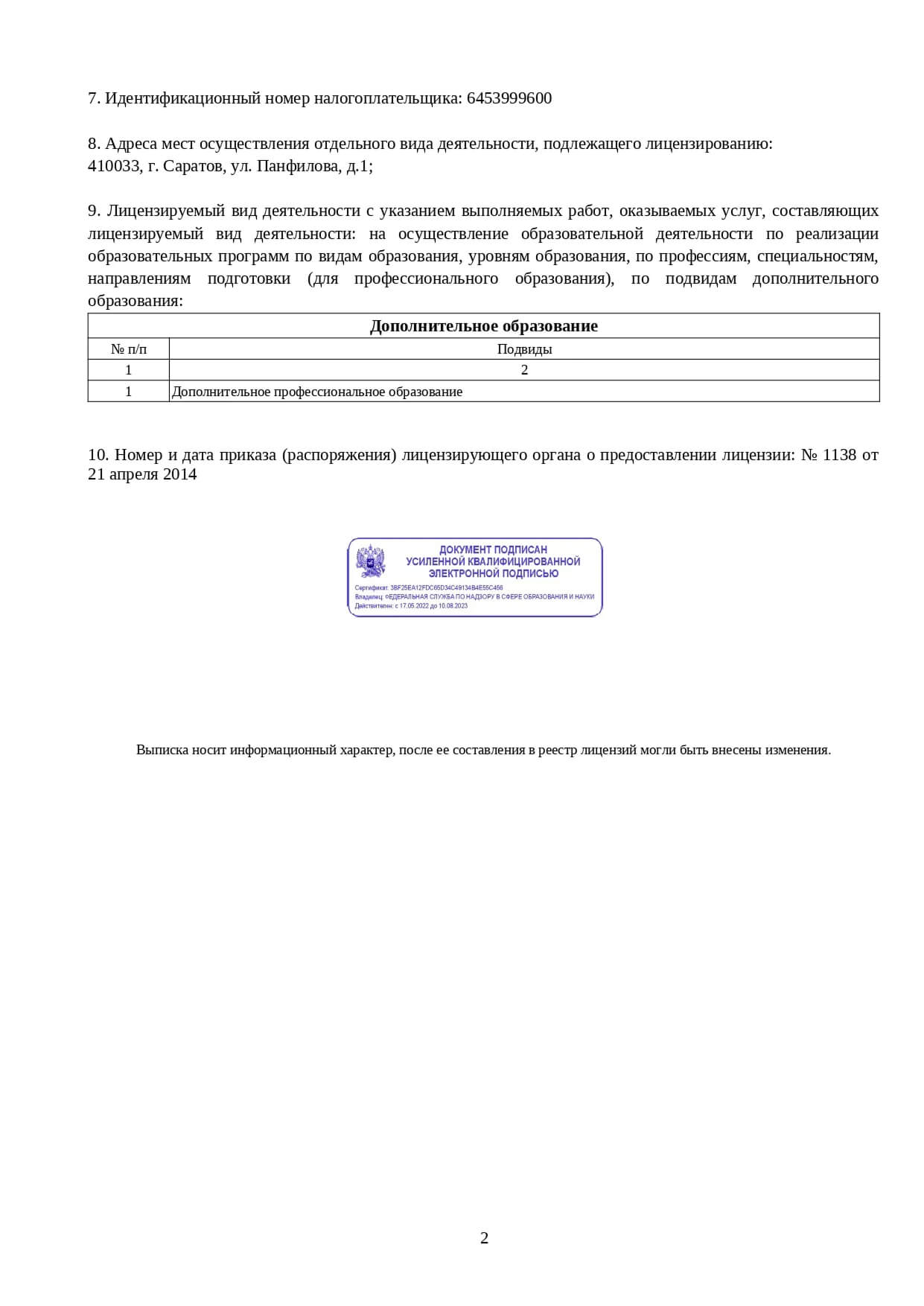 - Дополнительная информация об обучении